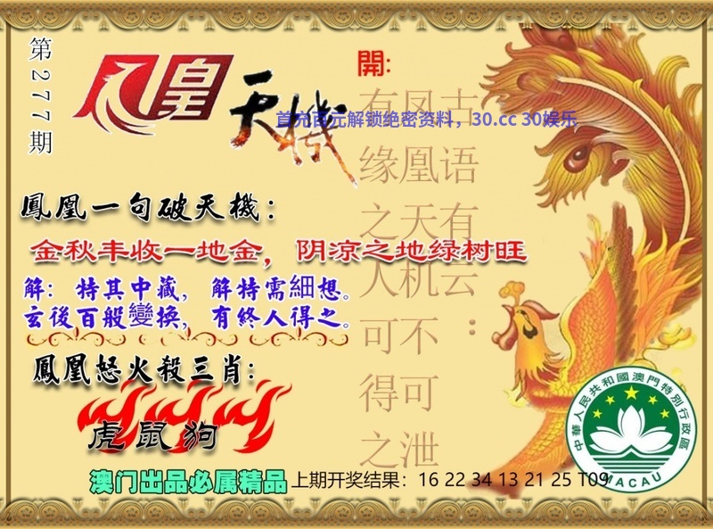 277期:杀三肖狗龙马开:虎16准